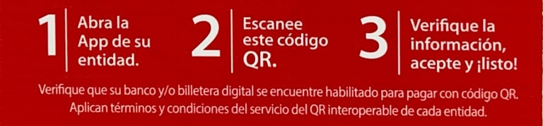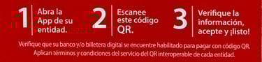 Después de recibir confirmación de Tesorería, abra la app de su entidad, escanee el QR, verifique la información, acepte y continué con el Paso 3.